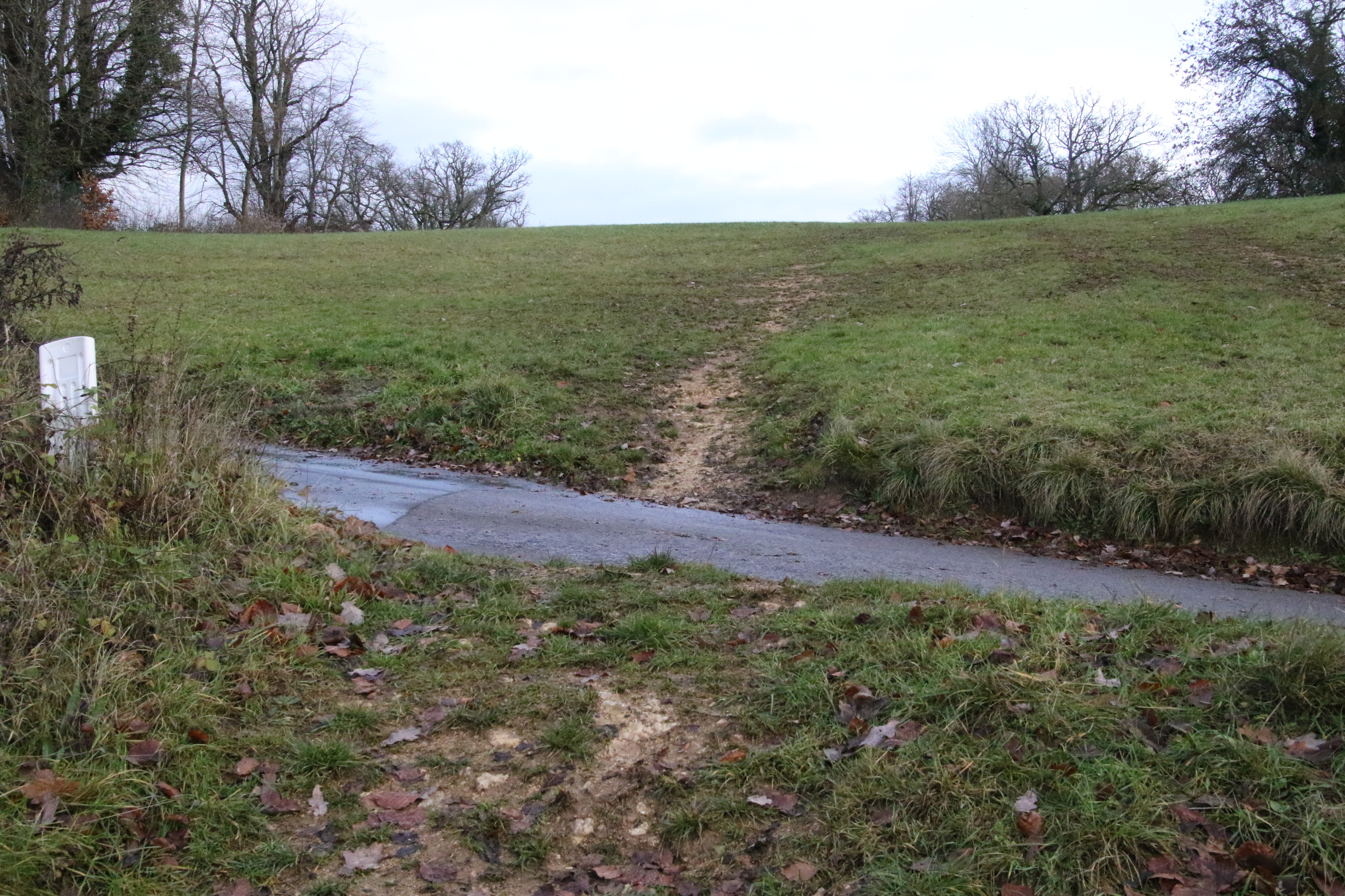 View from point L looking back at the hill that comes down from K which is away to the left at the top of the hill - used on the long lap.