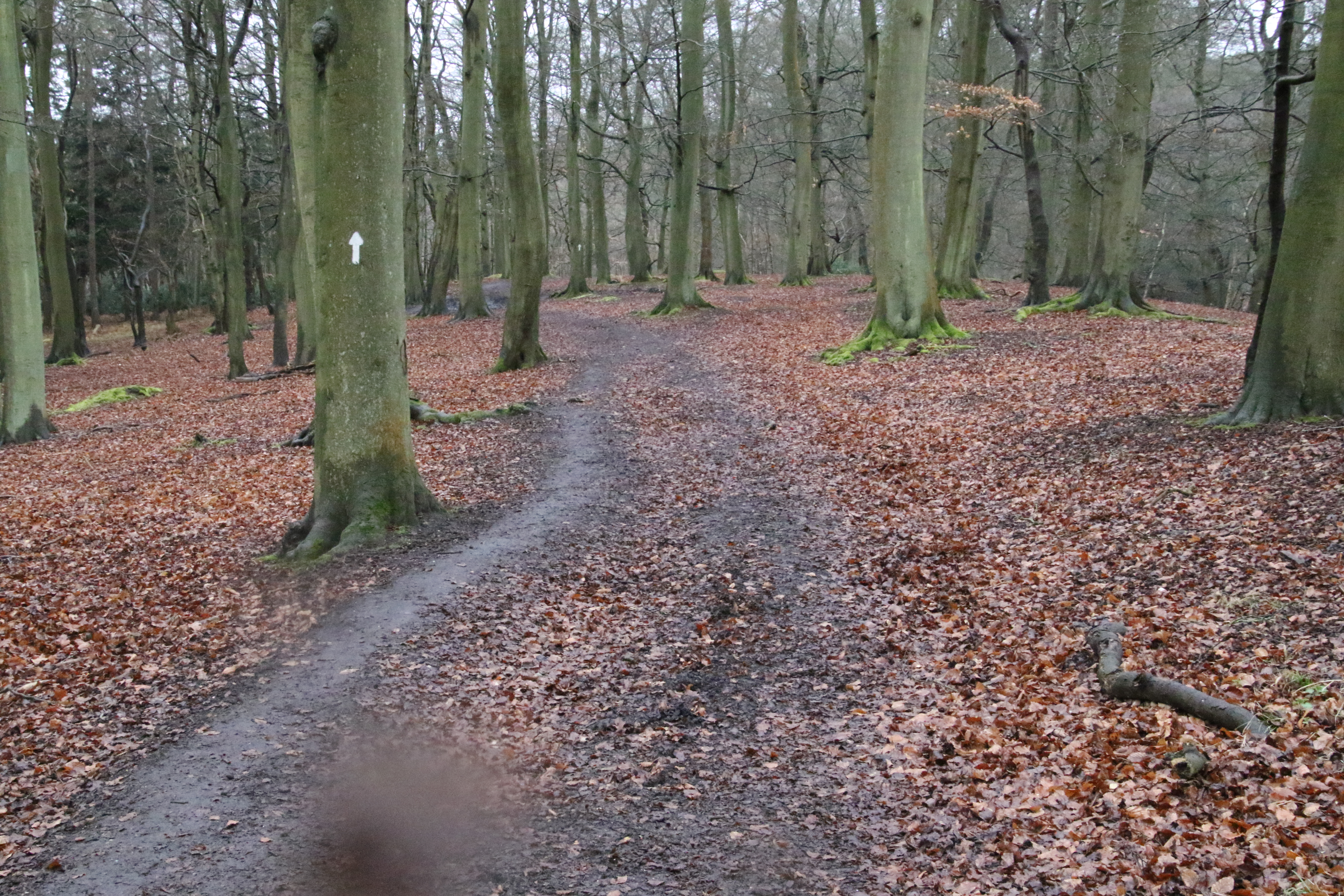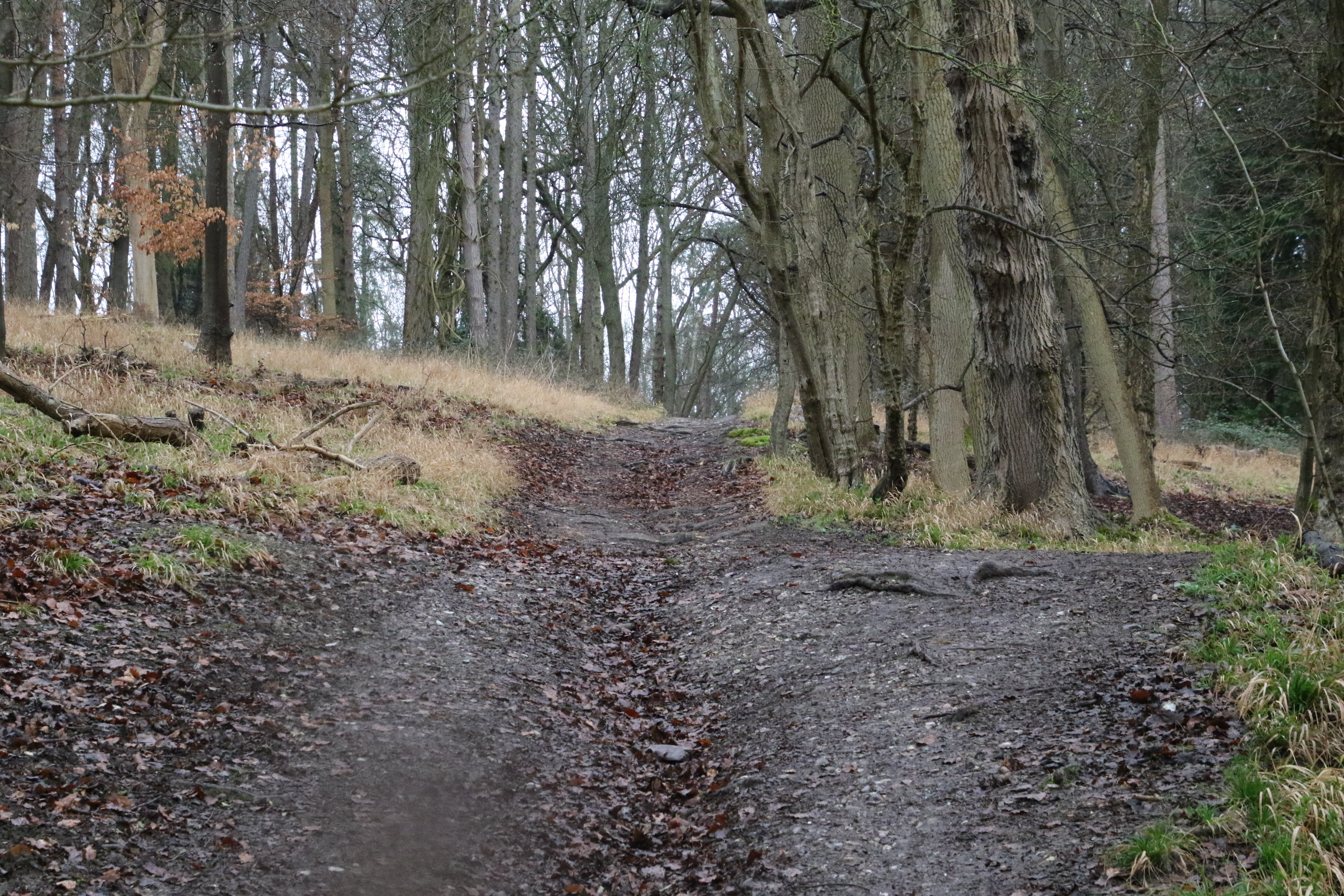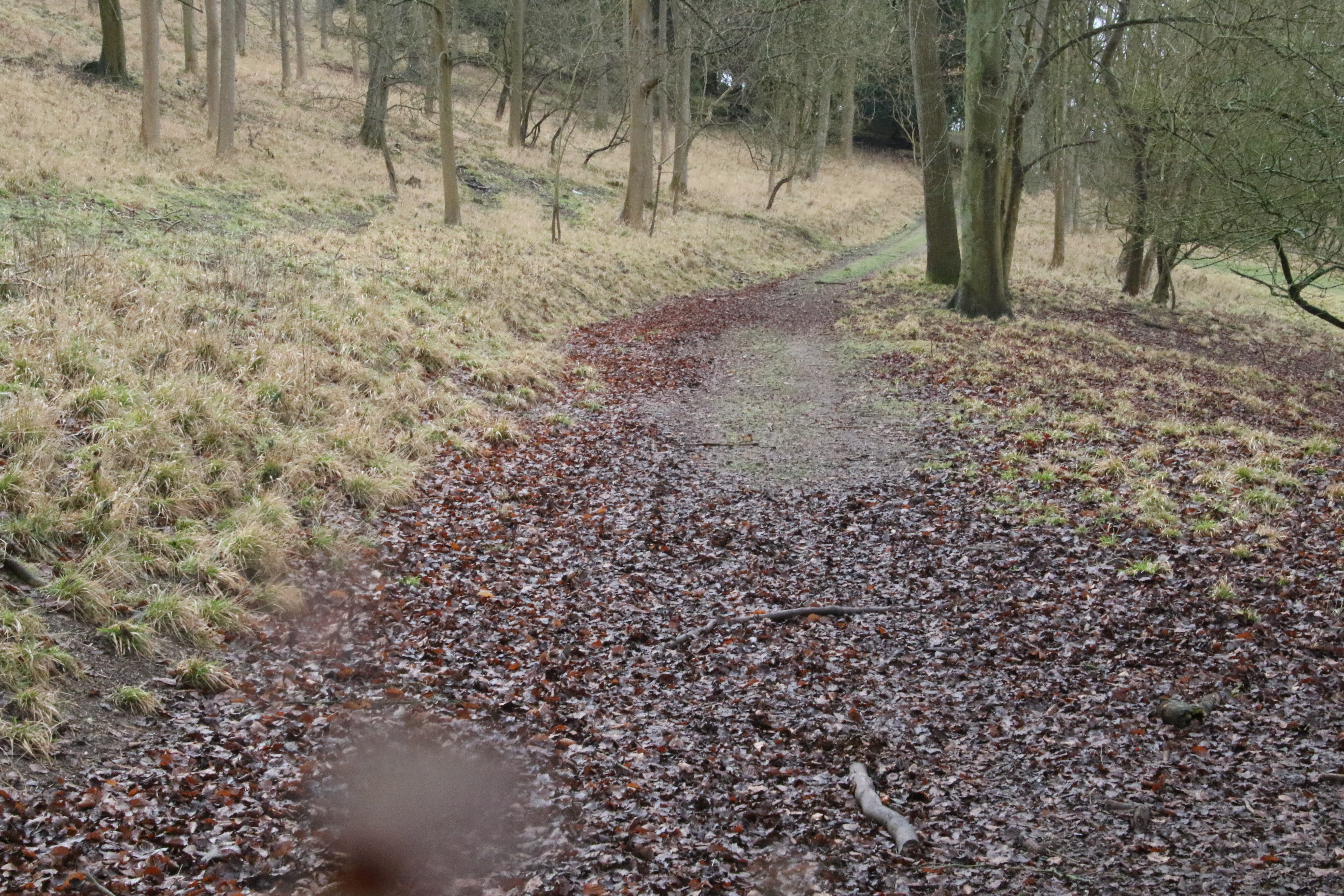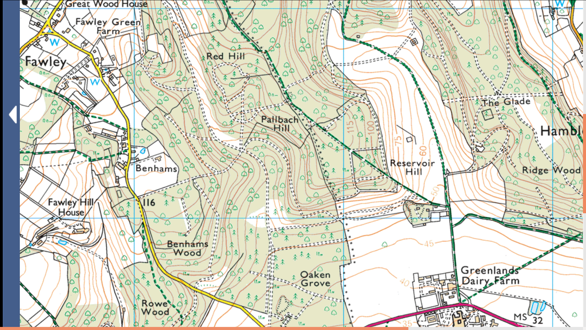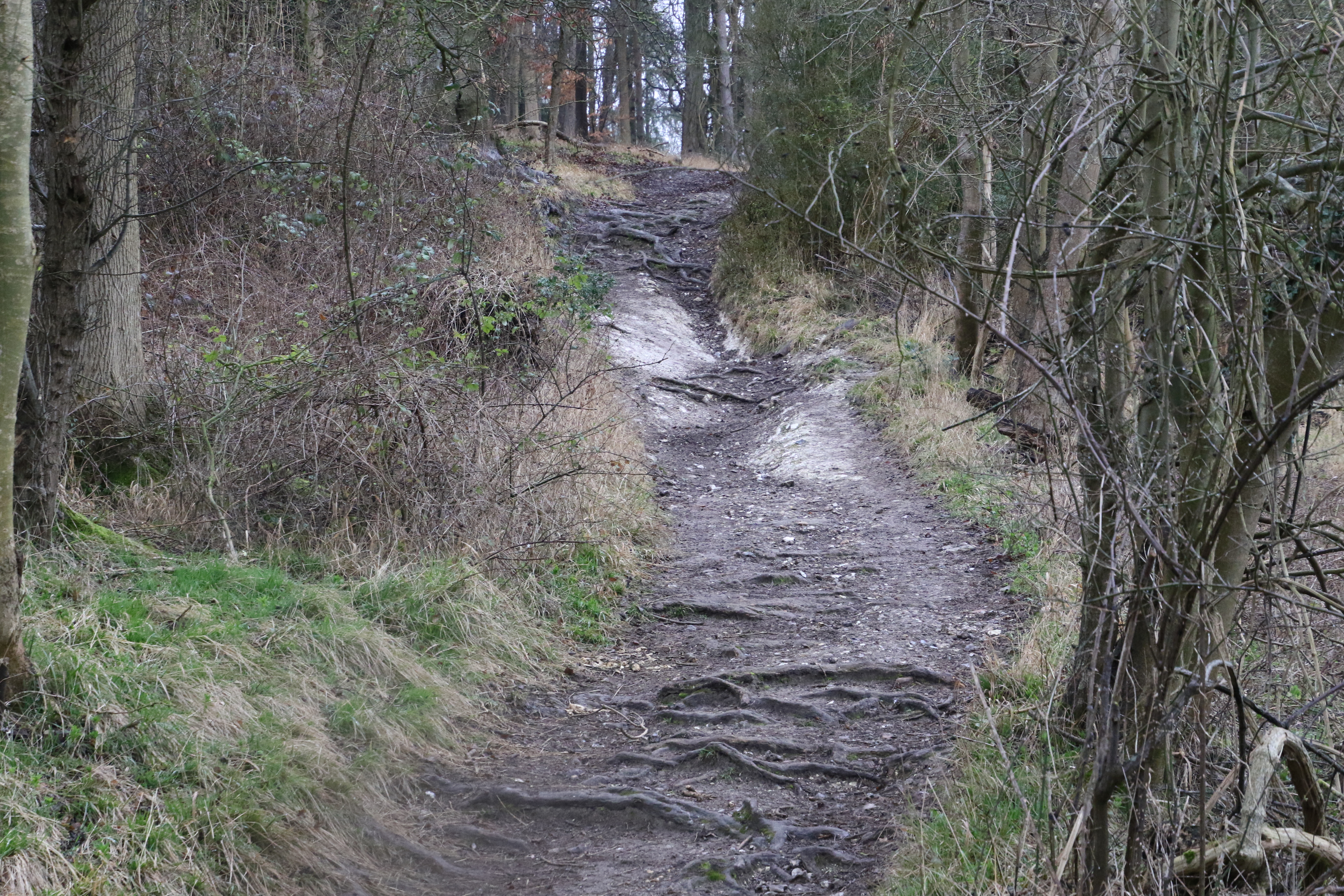 As you can see, it's quite a steep climb from point K up to the wood. The OS map says it's from about 55m to 80m.